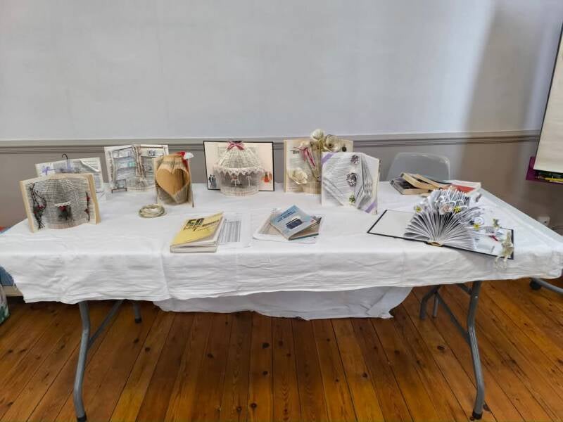 Lundi 19 mai 2025, séance d'initiation "Art Book", pliage et sculpture de pages de livres. Une dizaine de personnes y participait.